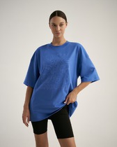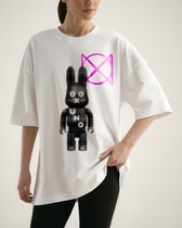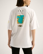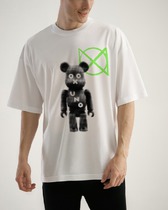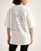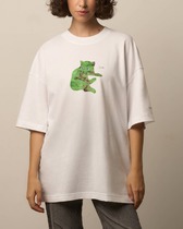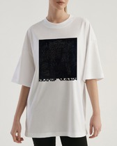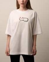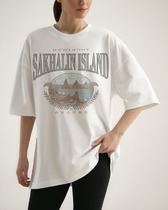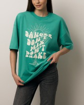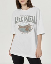 Футболка свободного силуэта. Спущенное плечо. Горловина из двух деталей, из рибаны. Декор: шелкотрафаретная печать.— Описание у На сайте поставщика