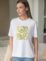 Vilatte Футболка с принтом свободная из премиального 100% хлопка D49.158 белый_ц