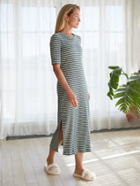 Vilatte Платье из трикотажа в широкий рубчик с разрезами D42.096 оливковый-белый