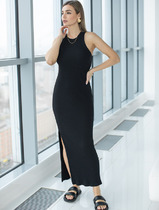Vilatte Платье из трикотажа в широкий рубчик с разрезами D42.096 черный-белый