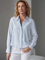 Vilatte Укороченная блузка из формоустойчивого хлопка D29.272 белый-голубой