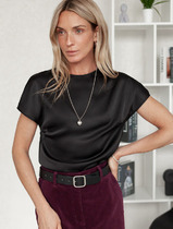 Vilatte Блузка с короткими рукавами из плотного струящегося сатина D29.280 черны