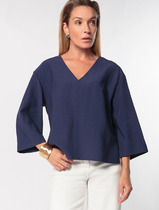 Vilatte Свободная блузка из премиальной вискозы и лиоцелла D29.234 т.синий