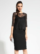 Vilatte Блузка свободная из креп-шифона с кружевом D29.281 черный