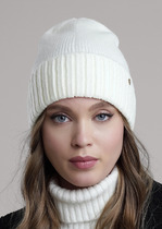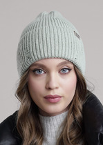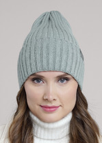 Женская двойная шапка, декорирована нашивкой логотип. Подойдёт для холодной осени- тёплой зимы.— Описание у На сайте поставщика