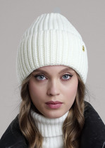 Шапка женская с отворотом, без подклада. Декорирована стильной нашивкой.— Описание у На сайте поставщика