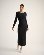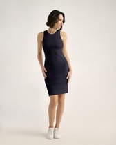 Платье из кашкорсе, облегающего силуэта, с окантовкой пройм и горловины из основной ткани— Описание у На сайте поставщика