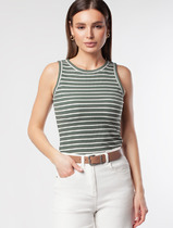 14.04 Vilatte Топ из трикотажа в широкий рубчик D43.223 оливка с белым