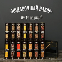 14 баночек со специями + деревянный ящик