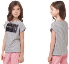 ДИСКОНТ VILATTE F49.330 Футболка для девочки белый-черный в полоску