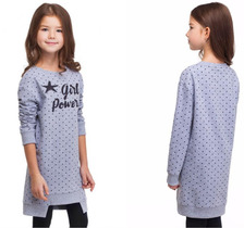 ДИСКОНТ VILATTE F42.076 Платье для девочки серый в горошек