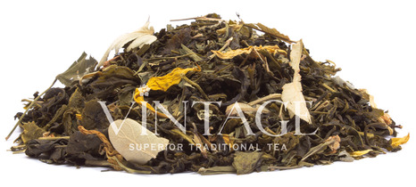 Зеленый китайский чай, лепестки розы, цветы красного и синего василька, календулы, лепестки подсолнечника