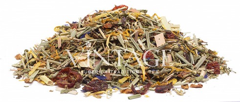 7 ингредиентов: ананас, лимон, розы розовой бутоны, розы красной лепестки, ноготков цветы, василек синий, чай зеленый Китай сенча