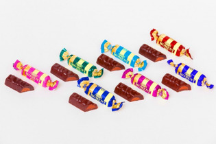 Мини шоколадки по 9 г., с добавкой дроблёных орехов, арахиса, кунжута, халвы, воздушного риса, кокоса.