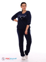 Велюровый костюм c принтом темно-синий К-61(1)