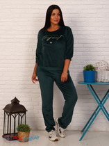 Велюровый костюм c принтом темно-зеленый К-61(2)