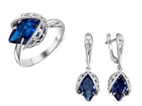 Металл: серебро; Тип вставки (камня): фианиты; Проба: 925; Цвет вставок: синий; Вес: 6.09 г— Описание у На сайте поставщика