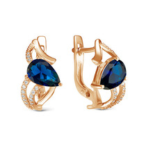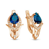 Позолоченные серьги с фианитами синего цвета 015 - п