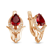 Позолоченные серьги с фианитами цвета гранат 005 - п