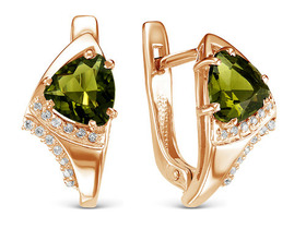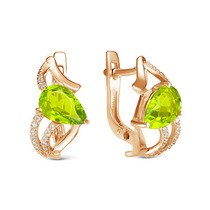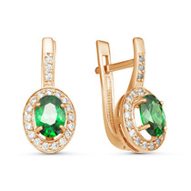 Позолоченные серьги с фианитами зеленого цвета 004 - п