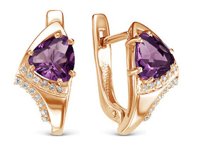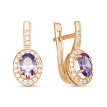 Позолоченные серьги с фианитами фиолетового цвета 008