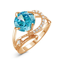Позолоченное кольцо с фианитом голубого цвета 053 - п