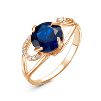 Позолоченное кольцо с фианитом синего цвета 053 - п
