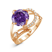Позолоченное кольцо с фианитом фиолетового цвета 053 - п
