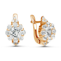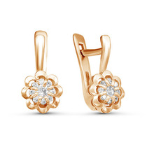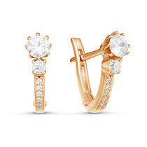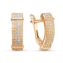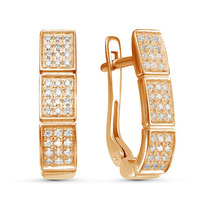 Позолоченные серьги с бесцветными фианитами 092 - п