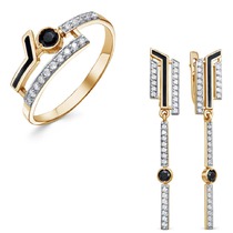 Позолоченный гарнитур с черными фианитами и эмалью - 1300 - п