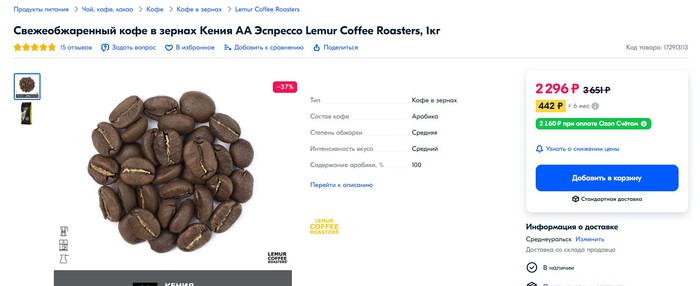 Наша цена Кения AA Эспрессо - Акция!