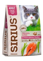 Корм для кошек Sirius с лососем и рисом 1,5кг