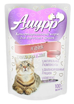 Влажный корм для кошек. Состав: Мясо и субпродукты (ягненок не менее 35%), злаки, таурин, минеральные вещества, витамины.