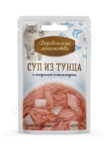 Корм для кошек Деревенские лакомства суп из тунца с лососеми гребешком 35г