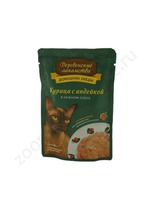 Корм для кошек Деревенские лакомства с курицей и индейкой в нежном соусе 85г
