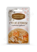 Корм для кошек Деревенские лакомства суп из курицы с креветкой и гребешком 35г