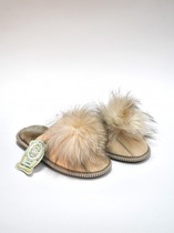 68 - Тапочки из кожи и меха с бубоном Бежевые