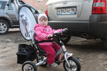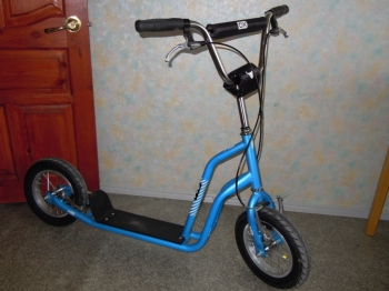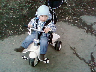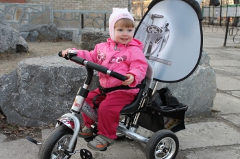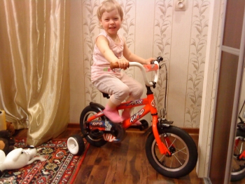 Ну вот, и до нас очередь дошла. Собрали сегодня велосипед и это было что-то: дочь не отходила, контролировала весь процесс пока папа собирал, и на спину ему залезет и винтики поможет крутить. Звонок раскусила сразу что делать с ним. Я весь процесс снимала на камеру. Собрали быстро и сразу гулять, довольнючие слов нет! Вовремя купили, сегодня утром еще на прогулке пыталась у девочки покататься на велосипеде, чуть не в драку хозяйка велосипеда. А вечером мы уже на своем, ура!!!!!!!!!!!! До педалей конечно не достаем на самом дальнем от руля положении, но нам и так нравится. Только почему-то у меня ручка при прямом переднем колесе чуть вправо смотрит, не знаю можно ли исправить, чтоб прямо была. И еще девченки у кого уже есть, скажите если фиксируешь переднее колесо, то ручка тоже не поворачивается? У меня не поворачивается. Наташа, спасибо мы очень рады и довольны покупкой, ни у кого пока такого не видели (даже одна женщина мимо проходившая не удержалась:"Вот ведь придумают что для детей! ". Видимо вспомнив своих детей и велики какие были у нас тогда