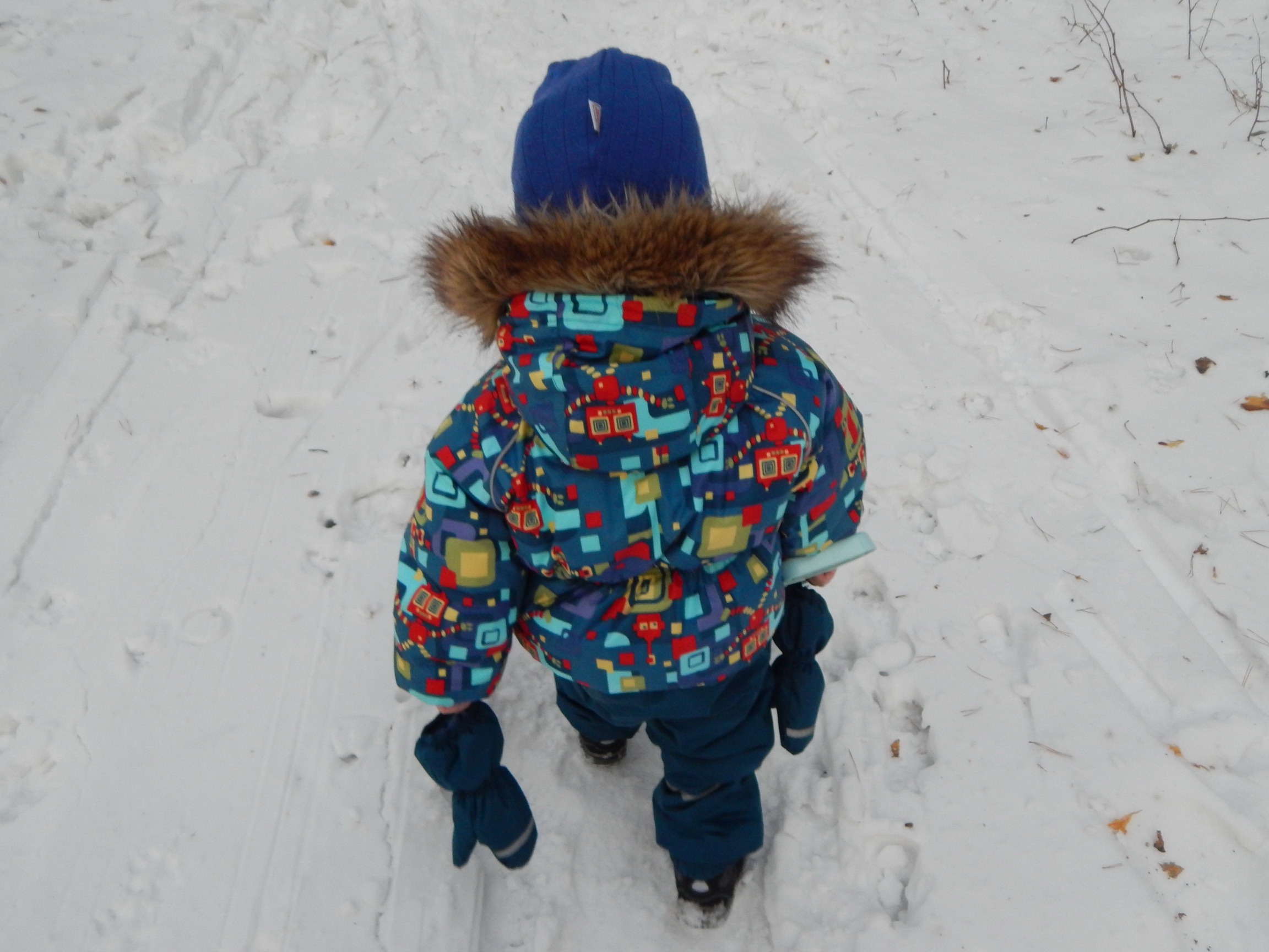 ну вот руки дошли... зима закончилась! в костюме отходили - ляпота. Ходили без поддевы (один раз только одели штанишки флис), а так только колготки и легкую кофту на футболку - ни разу не замерзли. Капюшон большой пригодился - на шапку с помпоном одевали от ветра. Куртку думаю еще проносим (правда не знаю сколько), а вот штанишки уже коротковаты, но мы вытянулись очень: к концу зиму нам было 1 г 5 м и рост у нас 85 см. Доча бегала в нем свободно (только начинали ходить).