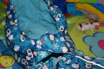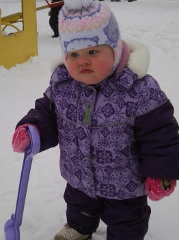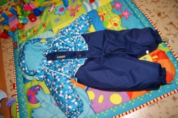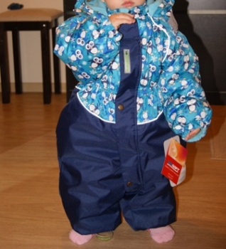 ну вот руки дошли... зима закончилась! в костюме отходили - ляпота. Ходили без поддевы (один раз только одели штанишки флис), а так только колготки и легкую кофту на футболку - ни разу не замерзли. Капюшон большой пригодился - на шапку с помпоном одевали от ветра. Куртку думаю еще проносим (правда не знаю сколько), а вот штанишки уже коротковаты, но мы вытянулись очень: к концу зиму нам было 1 г 5 м и рост у нас 85 см. Доча бегала в нем свободно (только начинали ходить).