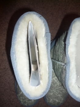 Мех только на стельке, а сверху тупо вязанный носок, как в них ходить по снегу я не представляю. Ну и в процессе ходьбы они с ноги спадывают, т.к. подошва по сравнению с вязанным верхом тяжелая.