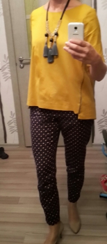 Покупала такой комплект. 46 размер. ОБ 98, ОГ не так важен, блуза свободная. Брюки подошли идеально, но в процессе носки немного растянулись.