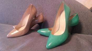 Девочки, заказала я в этом выкупе зеленые лодочки, фотографии не было, цвет значился как светло-зеленый, по факту он очень даже яркий, лодочки выполнены из лаковой кожи, на фотографии цвет получился светлее. ОЧЕНЬ они мне понравились, они выступят ярким акцентом во многих образах! Удобство этой модели я оценила ранее, т.к. у меня уже есть бежевые лаковые, их реальное фото также можете увидеть на фото. Хочу себе еще лодочки разных цветов!