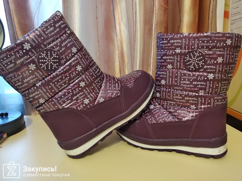 Заказывала сноубутсы ТМ INDIGO KIDS . Отличное качество, размер также подходит. Единственный минус ,на сайте поставщик не указал,что они предназначены для погоды до -15 ), брала с запасом,так что с носочком будет отлично. На случай сильных морозов оденем валенки. А так отличная обувь по низкой цене.