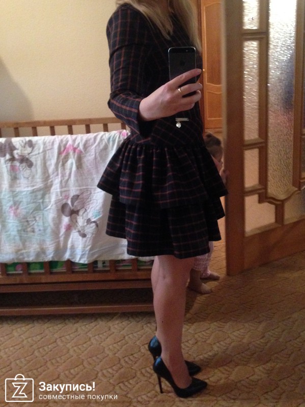 Брала на ОГ96, ОБ 101 48 размер. Трикотаж мягкий, достаточно плотный, без подклада. Немного грубая Молния на спине, топорщит. Цвет более темный, чем на фото, контраст больше цветовой. Очень удобный, комфортный, за счёт тянущегося трикотажа. В целом очень довольна, брала на официоз, но ещё подумаю. Не очень вписывается в деловой стиль, хотя я люблю выделиться. Оксана, спасибо за закупку!