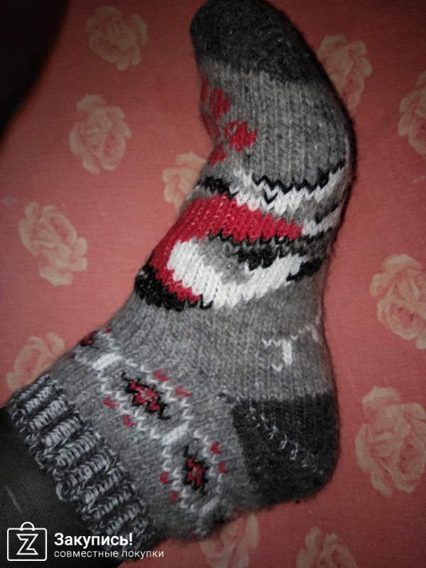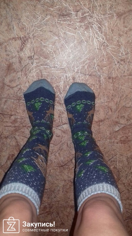 Ура! Наконец забрала свои носки, очень довольна! Мерила на голую ногу, колется еле-еле, можно носить даже без носка. Очень тёплые. Действительно, в носке немного широки, но мне кажется, что шерстяные носки и не должны жить в обтяг. На свой 38 брала 38-40, дома ходить как раз (свободно), если в обувь, то лучше брать на размер поменьше. Спасибо, Настя, за закупку!
