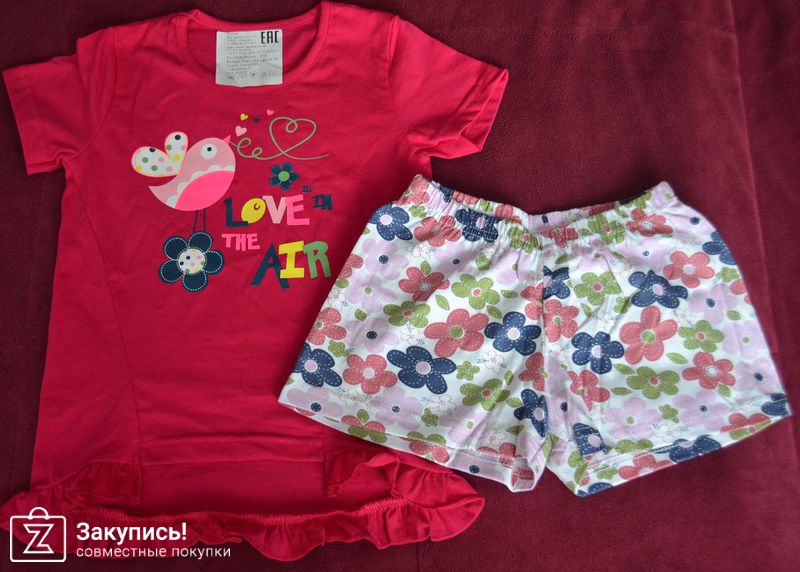 Пижама красивая, футболка яркая, на шортиках поспокойнее оттенки. Качество понравилось. Материал легкий, тонкий. Низ футболки обрамлен рюшей, за счет этой строчки не тянется снизу футболка.