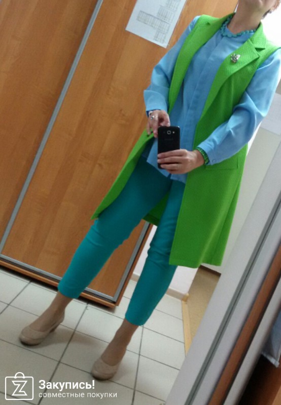 Девочки,добрый день! Получила сегодня брюки,качество на высоте ,ткань хорошая ,шелковистая! Мне очень понравились! Но промахнулась с размером! Надо было брать на размер меньше и ростовка для меня длинновата ,хоть и 7/8/ Цвет не такой яркий как на фото,посадка средняя.