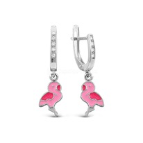 Серьги детские из серебра с эмалью родированные - Фламинго