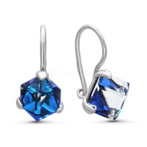 Серьги детские из серебра с кристаллами Сваровски Бермудский синий родированные